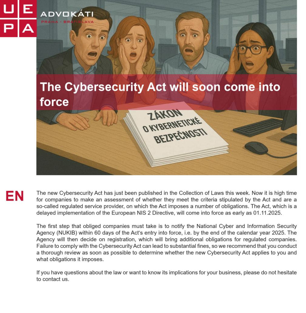 Legal services are provided by UEPA advokáti s.r.o., with its registered seat at Voctářova 2449/5, Prague 8, Postal Code 180 00, Id. No: 04639006,